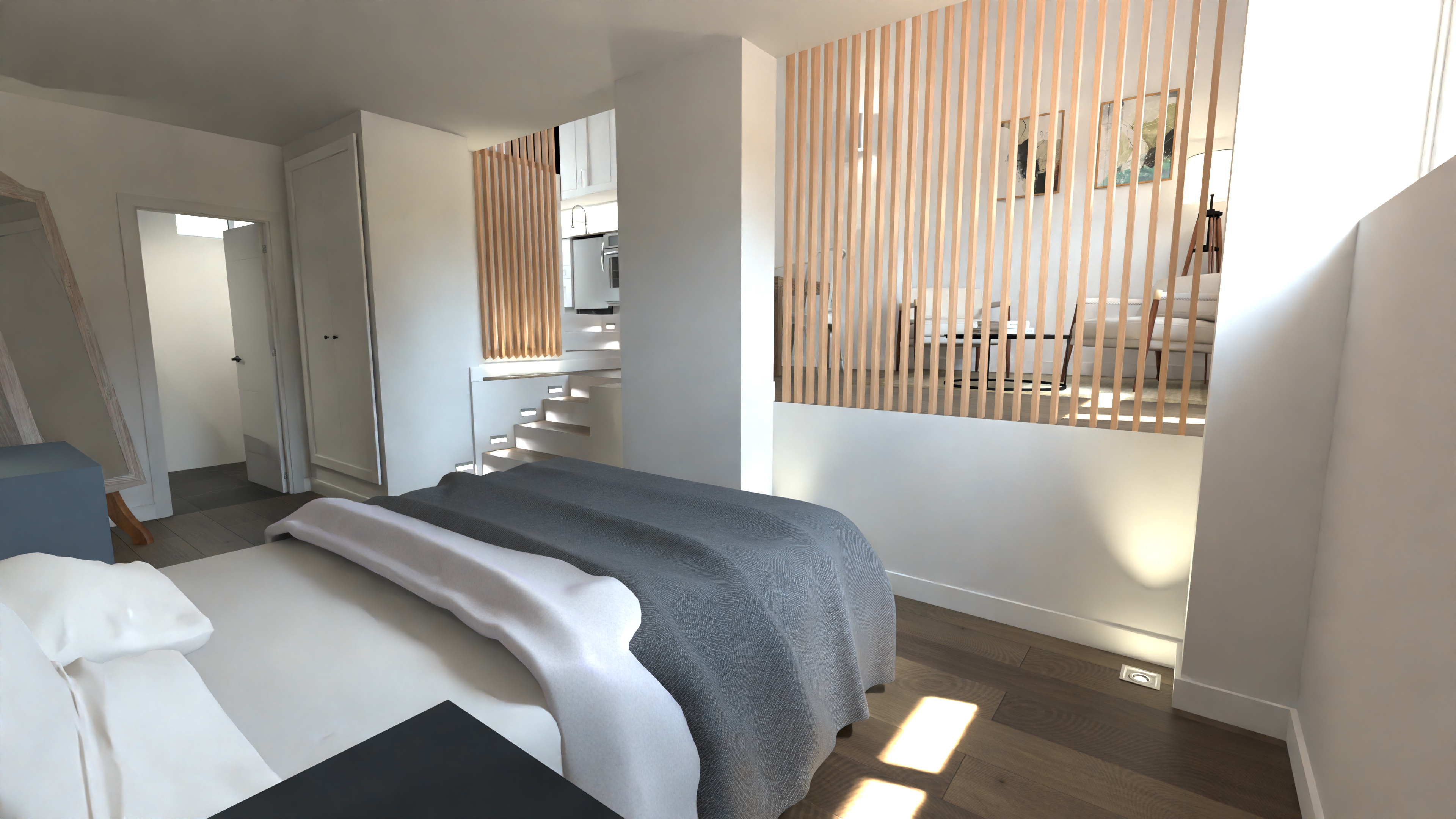 Se trabaja en la propiedad o telemáticamente mediante un proyecto con memoria descriptiva. Conversamos como será la ejecución, que materiales se utilizarán, y el mobiliario que se colocará (me puede enviar imágenes de materiales y muebles o seleccionarlo de bibliotecas online que proporciono o de los proveedores seleccionados por el cliente). Todo se hace a escala con medidas e iluminación realista. Renders de arquitectura de alta calidad grafica. Renderizado realista de propiedades, ideal tanto para inmobiliarias, promotoras, constructoras y desarrolladores como para particulares con idea de hacer una reforma.